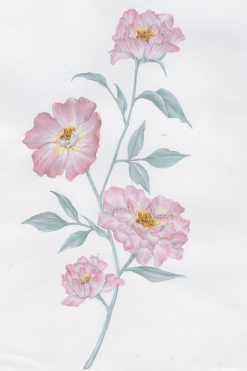 Our House artists began painting peonies & wild roses to inspire Alli’s embroidery. We always start with colourful paintings to explore the depth & texture of each element, before converting them into white embroideries. We use different materials, thread weights, textures & finishes to create a 3D quality in tonal colour ways.