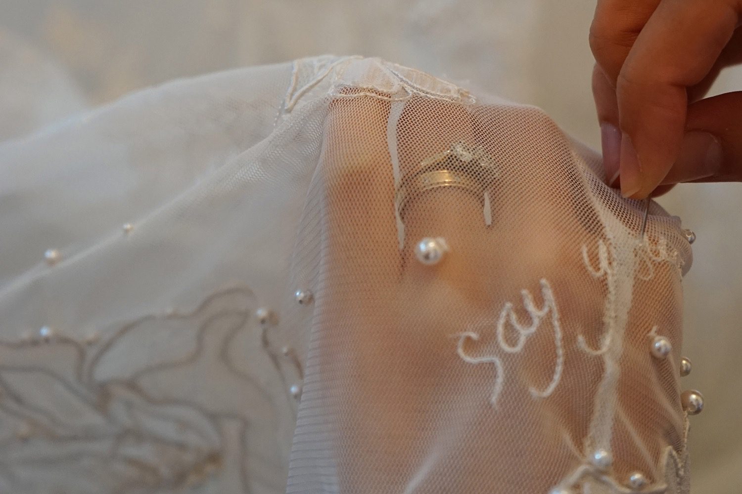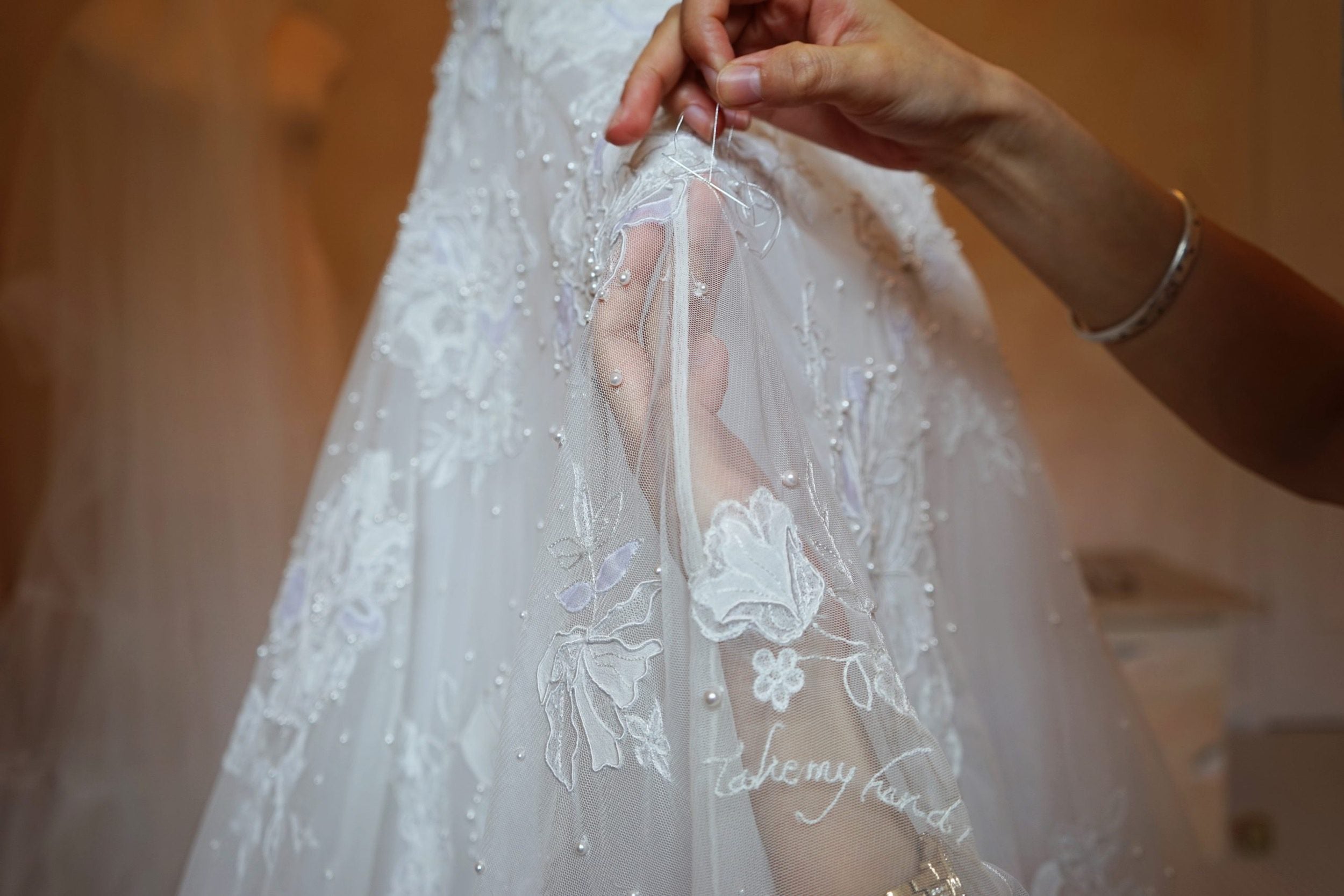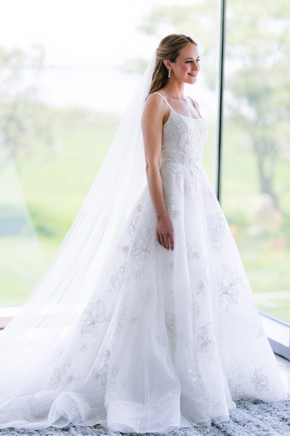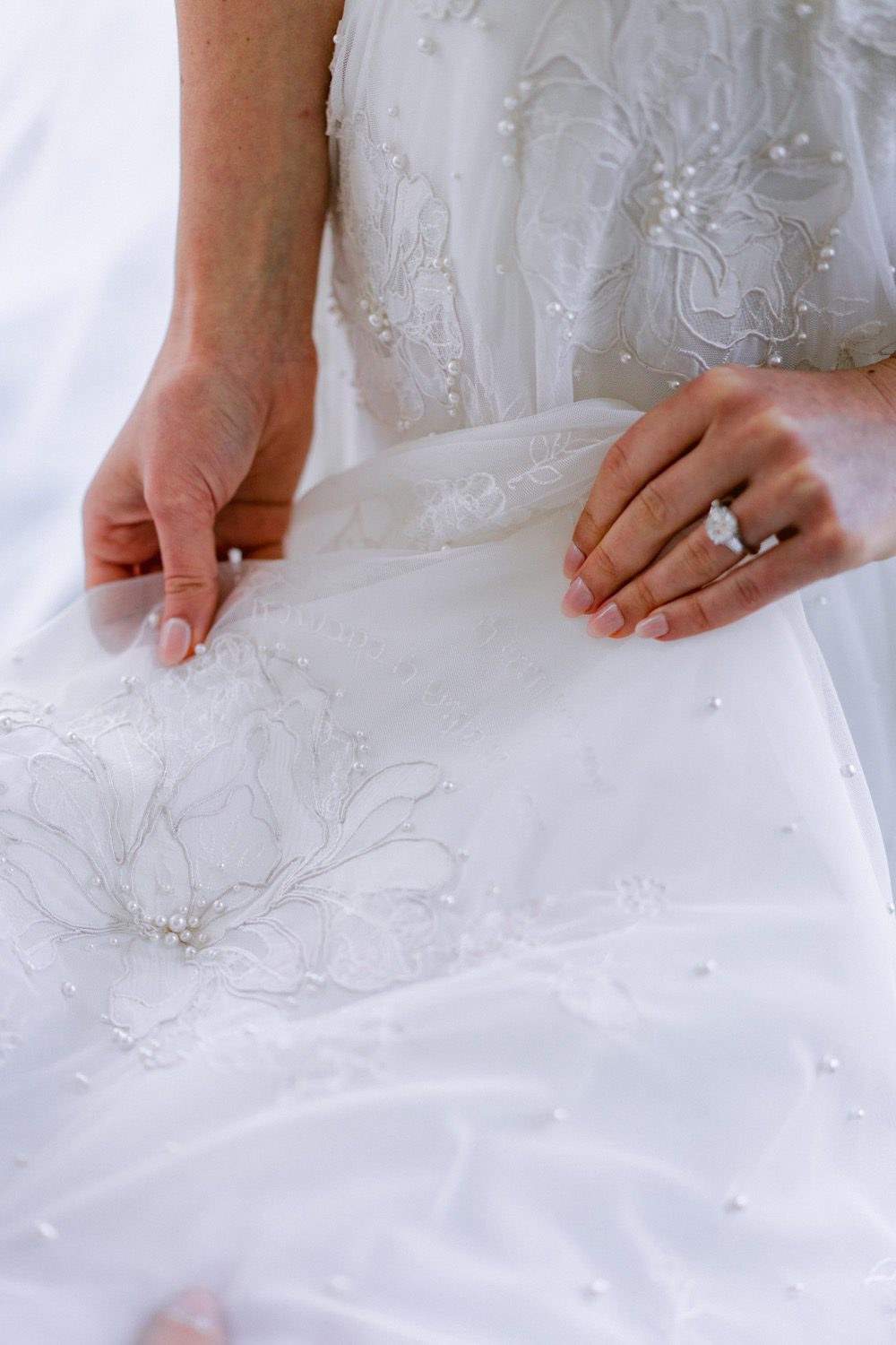 The Hermione de Paula atelier created a hanger with matching embroidery, as a gift from the wedding party to the bride. Alli commissioned a framed picture of her bespoke embroidery, a cherished keepsake & memory of her wedding day.